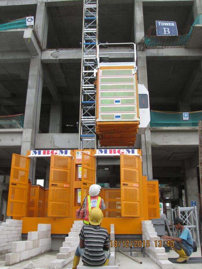 印尼雅加達(dá)的施工工地,該項目采用我公司生產(chǎn)的SC-K型領(lǐng)航者施工升降機